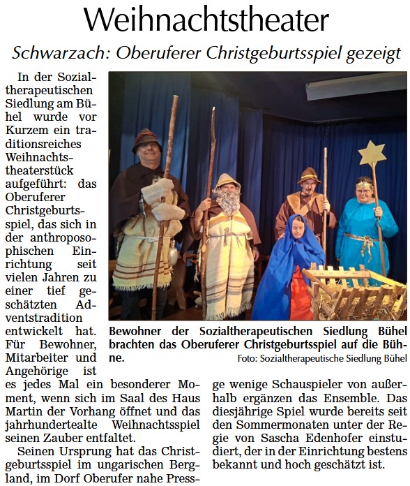 Unser vorweihnachtliches Christgeburtsspiel hat nicht nur Mitwirkende und Zuschauer in ganz besonderer Weise berührt, sondern weit darüber hinaus seine Wirkung entfaltet.